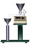 在無振動(dòng)條件下測量粉體體積密度的裝置。 裝置由送料器、漏斗、漏斗、量筒構(gòu)成。 調(diào)整漏斗架,使漏斗下端與量筒上端的距離為10mm,漏斗的中心與量筒的中心重合。 進(jìn)料器以20g/m...
